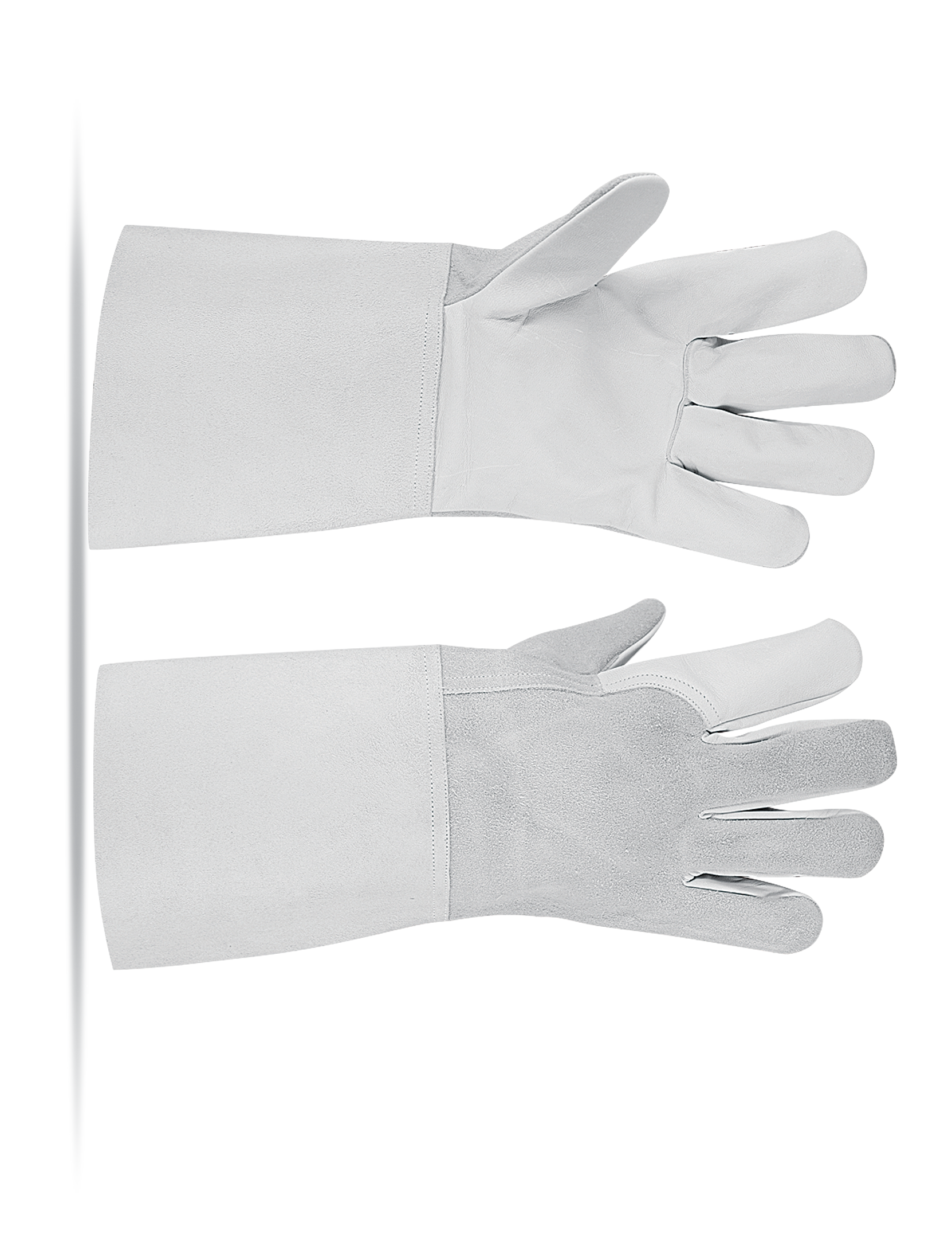 EVS 201 Leather: Palm side cow grain leather back side cow split leather Colour: Natural Thumb: Wing thumb Additional: Index finger Cuff: 15cm long cow split leather