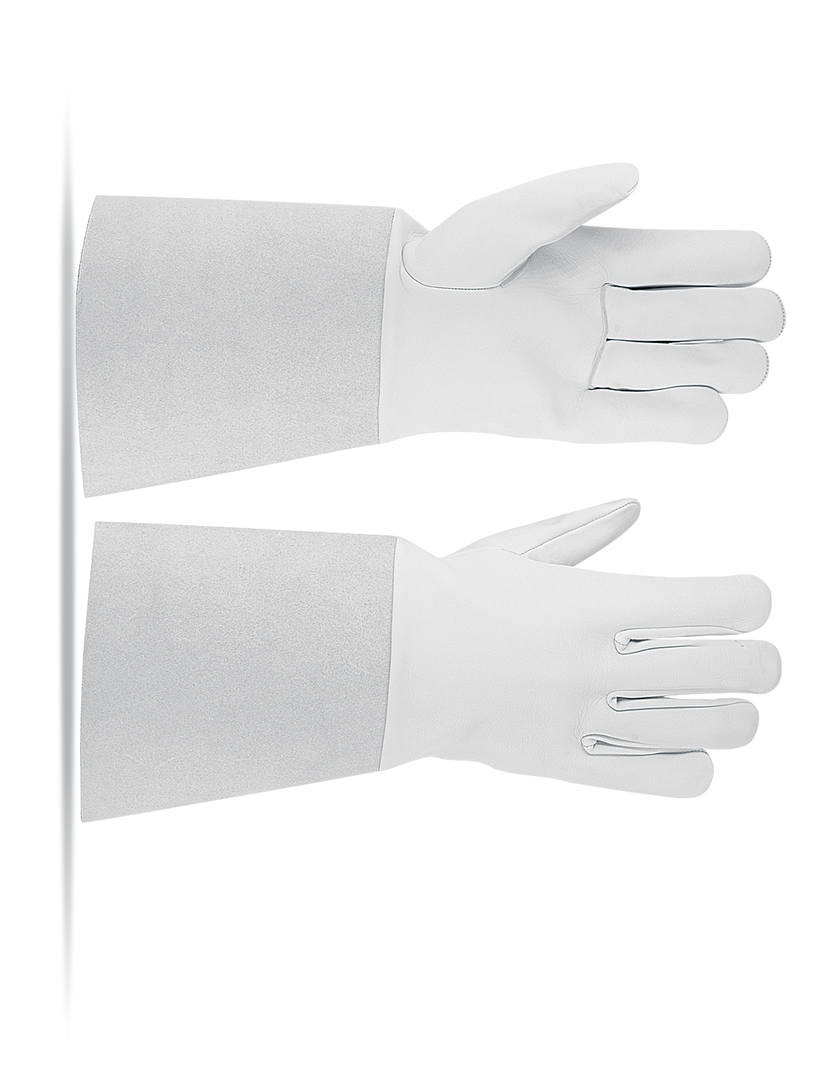Leather: Goatskin grain leather Colour: Natural Thumb: Argon thumb Cuff: 15cm long cow split leather cuff Welding Gloves