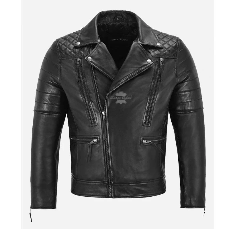 EVS N/A Introducing the Chrome Cruiser Men's Leather Biker Jacket - a must-have for any stylish enthusiast. Made from real lambskin leather, this jacket is designed to provide both comfort and durability on and off the road. The biker-style design, complete with asymmetrical zippers and quilted pattern, gives this jacket a rebellious and edgy look that is sure to turn heads. The attention to detail and high-quality materials used in the creation of this jacket make it a true investment piece that will stand the test of time. This jacket is made of soft lambskin napa leather Front cross zip closure - Classic lapel collar Quilted pattern on shoulder This jacket feature 4 outer pockets and 2 inner pockets Quilted polyester lining