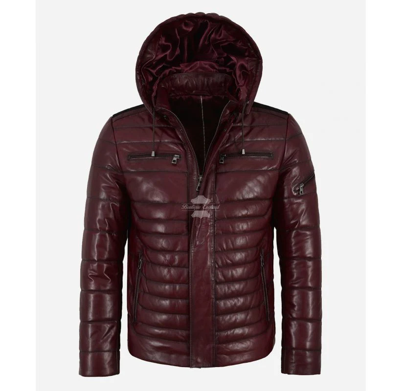 This premium puffer jacket feature a removeable leather hoodies