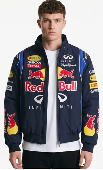 Vintage style racing jackets are the current trend and with the Retro Red Bull Racing Jacket. Associated with one of the most famous luxury brands and successful team in motorsport. This thick padded jacket is a high quality piece with patch work sponsorships on the front and back.