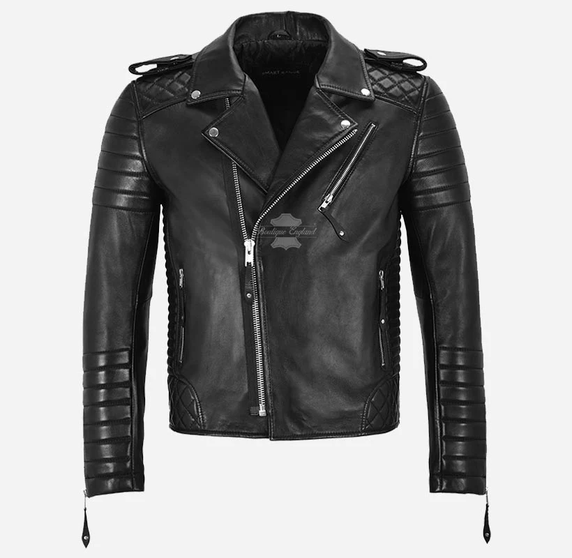 Experience the epitome of sleek sophistication with our meticulously crafted timeless leather biker jacket. Elevating the art of stealth, this biker leather jacket for men is masterpiece exudes an aura of unparalleled darkness. Impeccably constructed from supple sheep nappa leather. Notable for its innovative design. Epaulettes secured by press studs grace quilt-stitched panels adorning the shoulders and upper sleeves. This iconic piece seamlessly combines form and function, boasting multiple pockets including a chest zip pocket and dual waist pockets, while the waist is quilted for extra comfort,