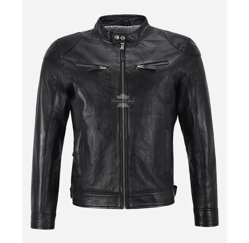 Introducing our sleek and stylish men's leather jacket, designed for the modern man on the go. Made from soft lambskin napa leather. The lightweight design makes it perfect for layering, and the band collar adds a touch of sophistication to this classic piece. This jacket is designed to be simple yet stylish, with clean lines and a minimalistic design that will never go out of style.